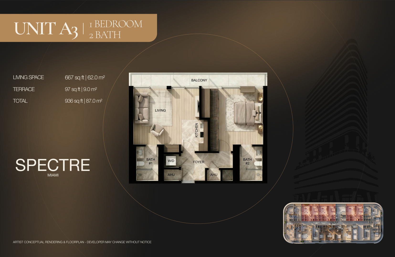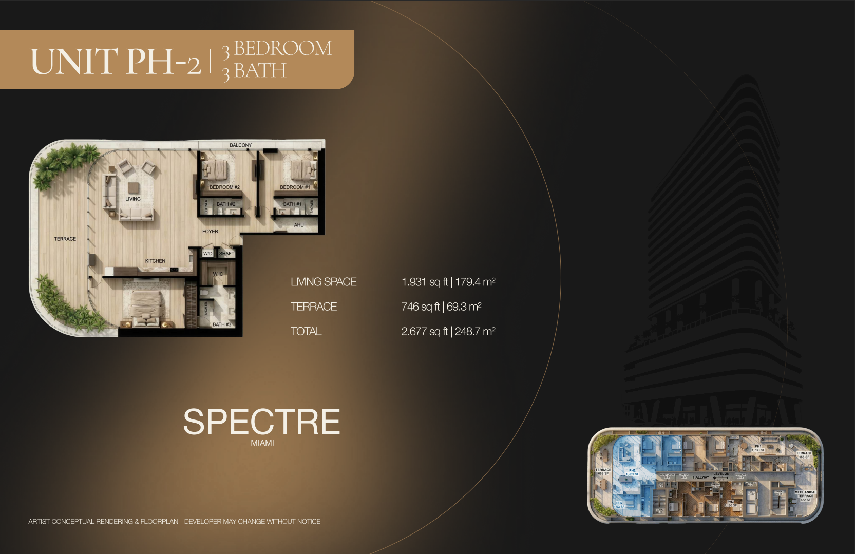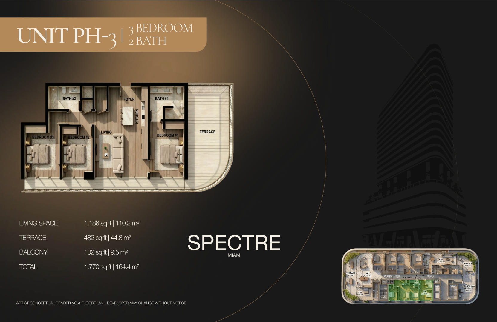 Una torre boutique futurista de diseño, bienestar, productividad y confort de cinco estrellas. Spectre Miami Residences es una torre de lujo de 26 pisos con solo 138 residencias, que ofrece privacidad, arquitectura moderna, servicios selectos y servicios de nivel hotelero, todo en uno de los mejores barrios de Miami.